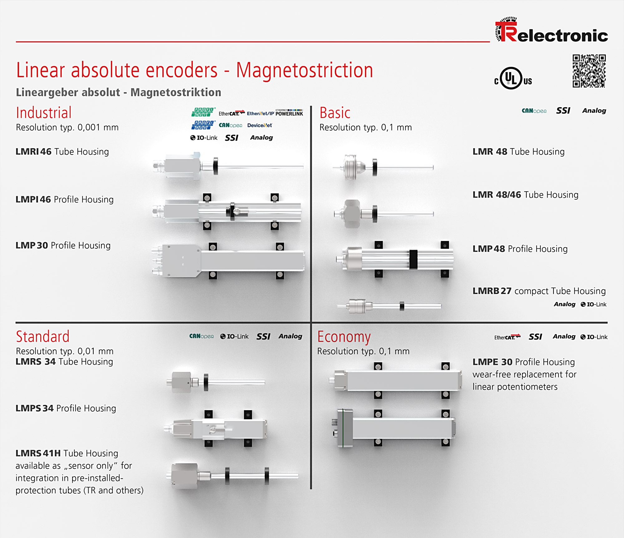 Und mit kaskardierbaren linear-absoluten Wegsensoren im Profilgehäuse lassen sich sogar Messlängen von bis zu 20 m erreichen – beispielsweise zur Messerverstellung in Rollenschneidmaschinen oder als verschleißfreie Vertikalachsen in Hochregallagern.